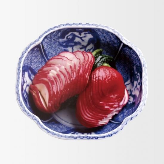 家伝独自の手法は,白醤油と昆布であっさりと漬け上げました。大こう本店自慢の誇りを持った逸品です。
